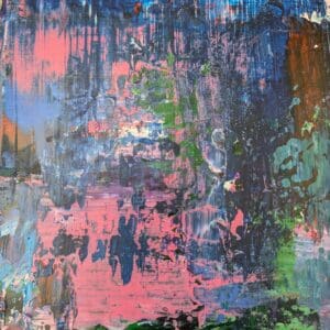 Shadows by Seamus Kenna is a haunting reflection on homelessness and eviction. In the foreground, two figures hold hands, their bond a small act of defiance against the uncertainty around them. One carries a black plastic bag containing all their possessions, while behind them a building seems to collapse in streaks of turmoil and light. The work’s layered textures and somber palette evoke both fragility and resilience, confronting viewers with the human cost of displacement while reminding us of the strength found in connection.
